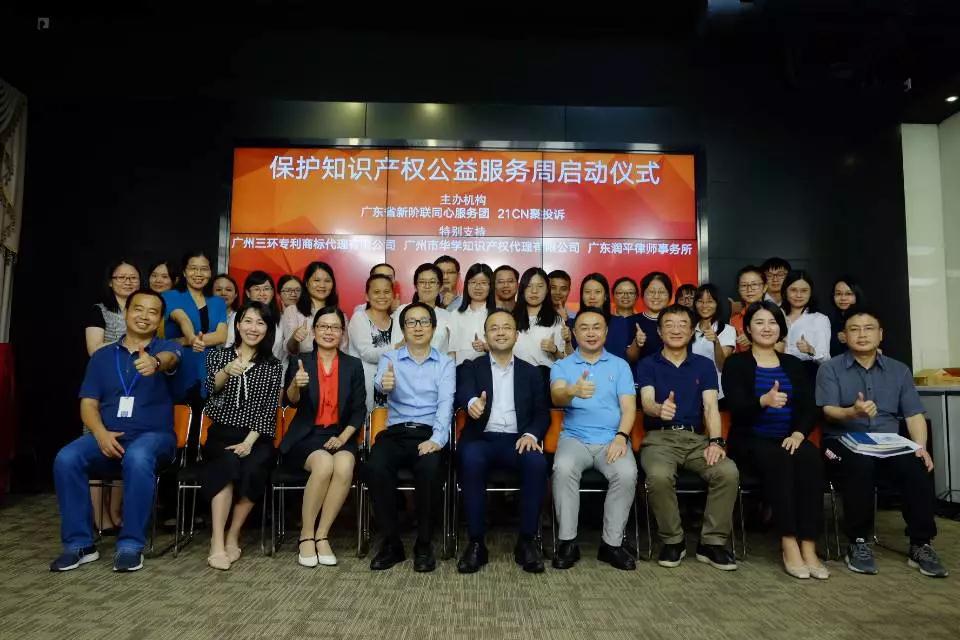 2019年4月25日下午, “广东新阶联同心服务团·保护知识产权公益服务周”启动仪式在广州顺利举办,由广东新阶联同心服务团和21CN聚投诉共同主办,我司作为特别支持单位。