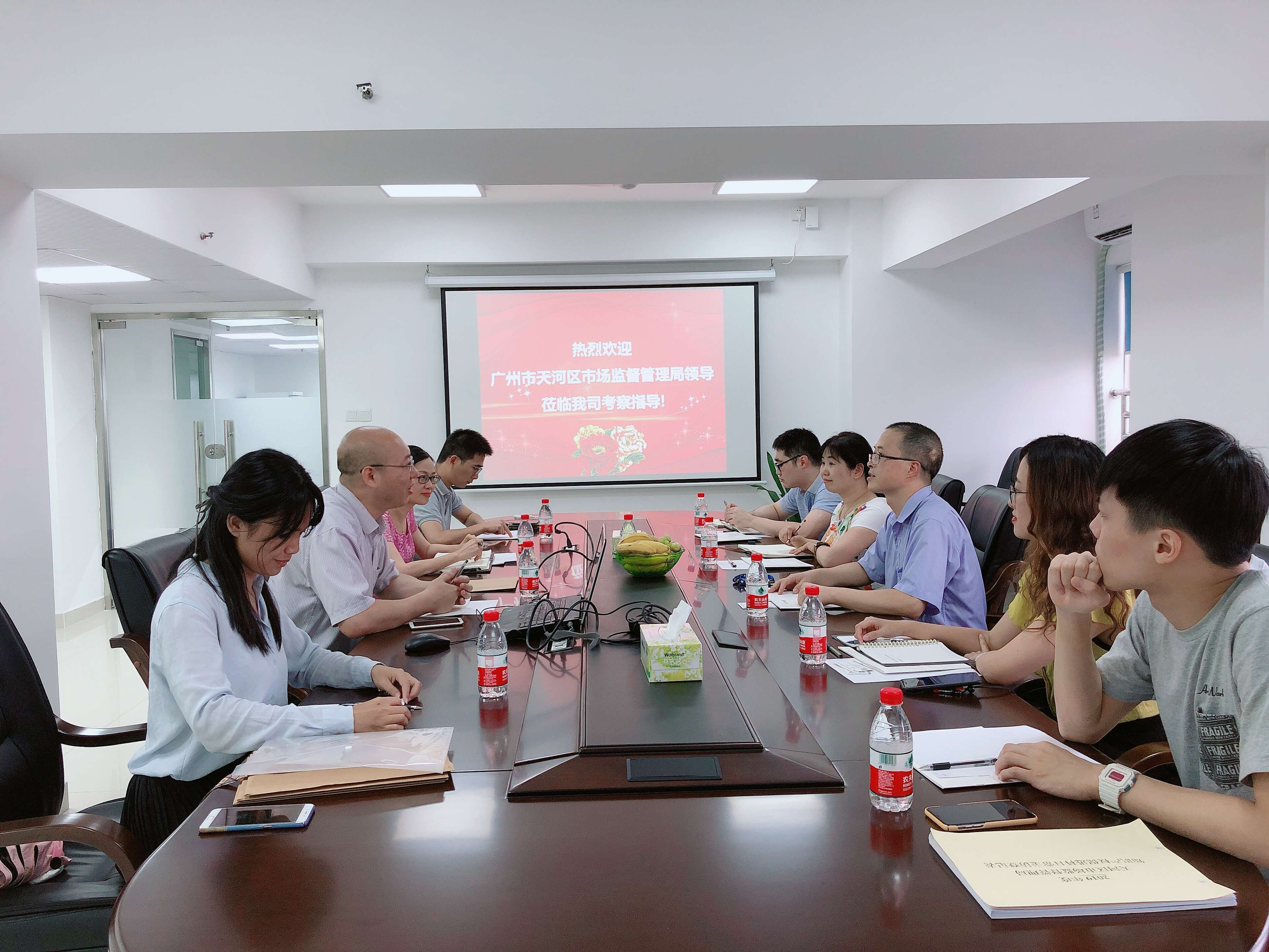 2019年8月5日下午, 广州市天河区市场监督管理局(知识产权局)知识产权保护科邓伟科长一行5人莅临公司调研指导。公司执行董事李卫东、合伙人裘晖、专利事业部副总经理李斌及商标事业部副总经理余焕娜参加座谈交流。