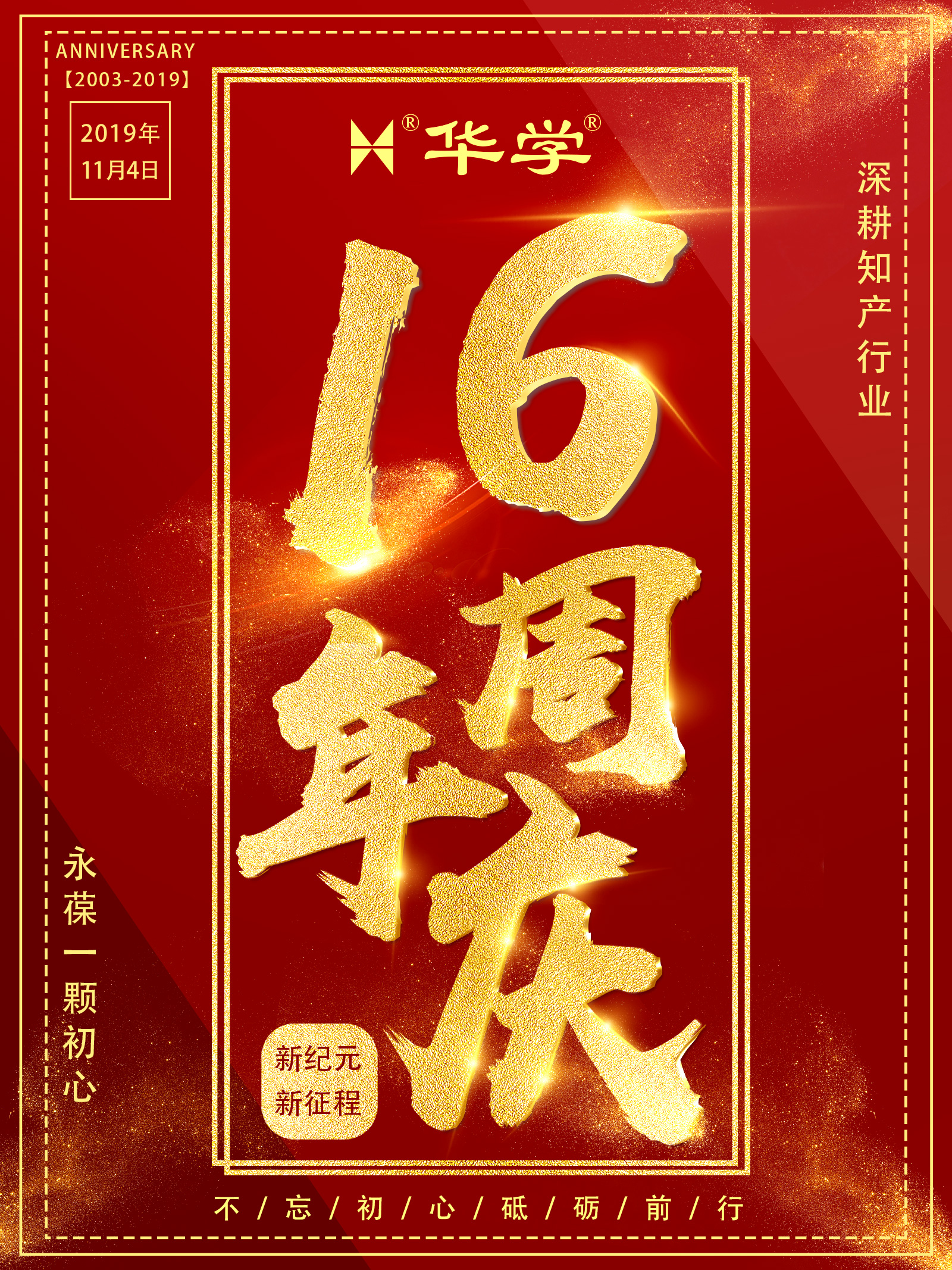 热烈祝贺广州市华学知识产权代理有限公司成立十六周年