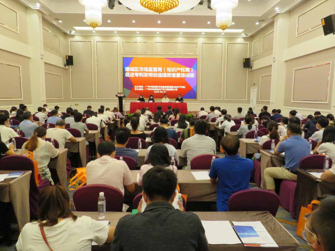 2020年8月27日上午,由广州市增城区市场监督管理局(知识产权局)主办、广州市华学知识产权代理有限公司承办的“增城区促进专利发明创造提质增量培训班”在增城区百花山庄玫瑰园会议厅隆重举行。参加本次培训的科研院所、企事业单位的知识产权管理人员、知识产权代理机构工作人员等共计170余人。